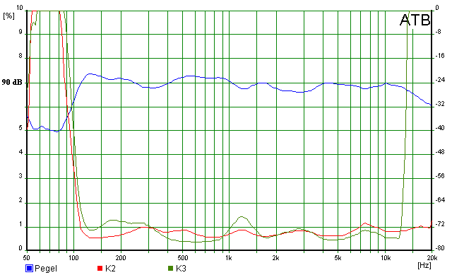 Amplitudenverlauf und Klirrverhalten bei 90 dB am Aufstellungsort