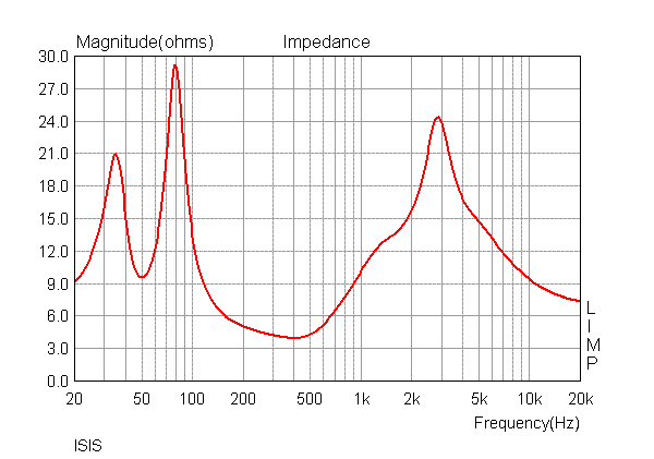 Der Impedanzverlauf ist unkritisch mit einem Minimum von 3,9 Ohm.