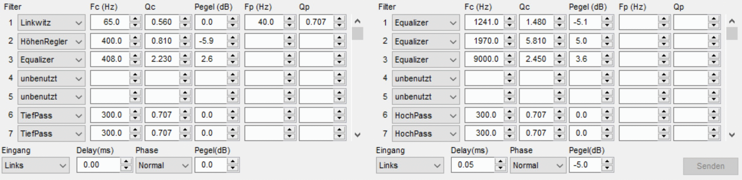Eine passive Frequenzweiche hat LT2 nicht. Die notwendigen Entzerrungen werden mit Hilfe eines Hardware-DSPs vorgenommen.