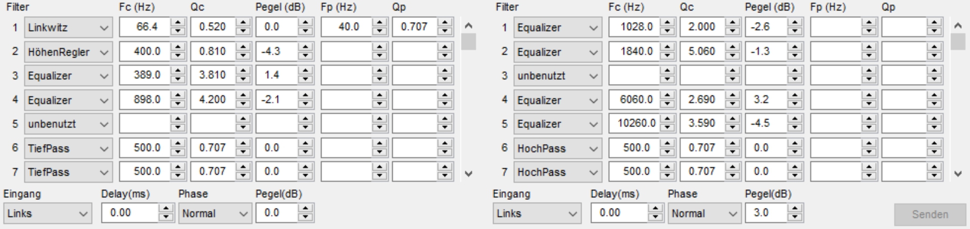 Eine passive Frequenzweiche hat Luthien nicht. Die notwendigen Entzerrungen werden mit Hilfe eines Hardware-DSPs vorgenommen.