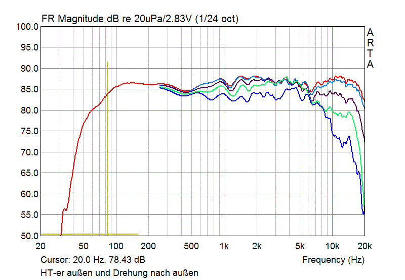-90 bis 90 Grad in 15 Grad Schritten 1/3 Oktave Glättung