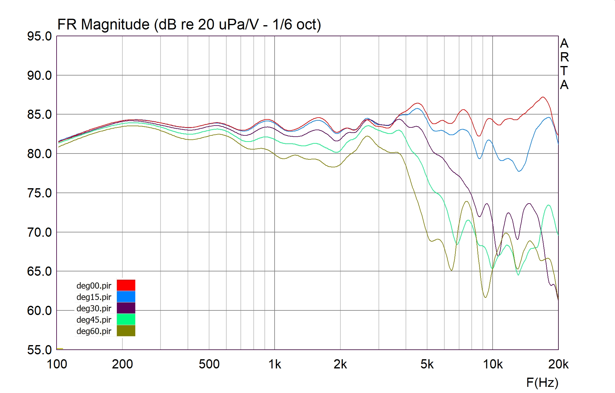 -90 bis 90 Grad in 15 Grad Schritten 1/3 Oktave Glättung