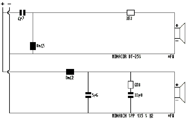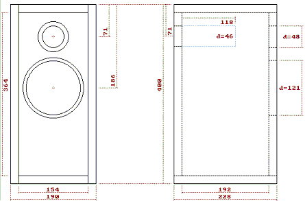 Der folgende Lautsprecher ist als etwas groß geratener Multimedia-Lautsprecher oder als Hauptlautsprecher einer Stereoanlage für Regalaufstellung geeignet. Die untere Grenzfrequenz (-3 dB) beträgt 50 Hz, was für eine Box mit 13 cm - Tieftöner beachtlich ist. Der Baß wird aber nur mit der notwendigen Lautstärke wiedergegeben, wenn er durch eine wandnahe Aufstellung auf dem Schreibtisch oder im Regal eine entsprechende Unterstützung erfährt. Für eine freie Aufstellung auf einem Boxenständer ist diese Box nicht geeignet.