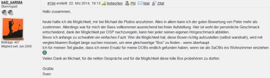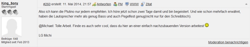 Plutino Rohre HT-Flansch Schallwand Boden Ständer Montage Dämpfung DSP Verstärker Messungen Reviews Nachbau