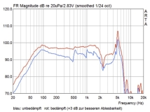 Ich verglich noch die im Nahfeld, d.h. einige Millimeter vor der Staubschutzkalotte, gemessenen Frequenzgänge.