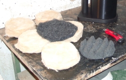 Das folgende Bild zeigt das Dämmmaterial. Zunächst kommen fünf Lagen jeweils 50 mm starker Glaswolle in das Rohr. Dann folgt eine Lage Noppenschaumstoff und zum Abschluß Polyesterwatte.