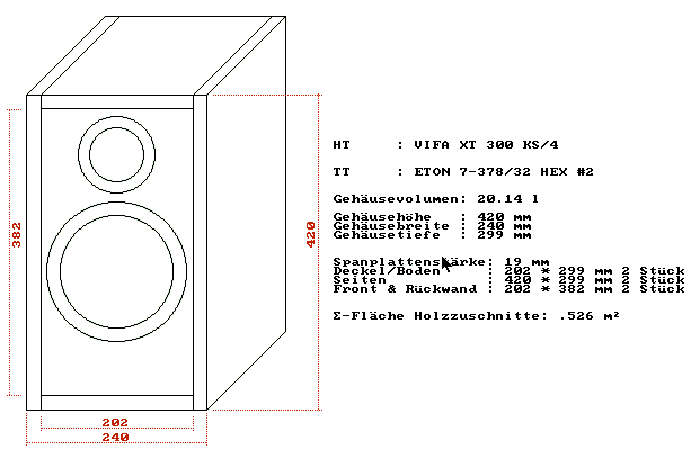 Diese Baßreflexbox ist eine Auftragsentwicklung für unseren Forumskollegen Friedbert. Sie ist als Vollbereichslautsprecher für Räume bis ca. 30 qm geeignet. Ein Subwoofer ist bei wandnaher Aufstellung nicht notwendig. |