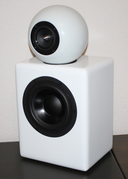 Zur KonstruktionSphere ist ein FaST (Fullrange and Subwoofer Technology), d.h. eine Zweiwegebox in der der Basslautsprecher nur die tiefen Töne bis 300 Hz und den Rest ein Breitbänder übernimmt. Dadurch wird der Breitbänder von überbordendem Membranhub verschont und kann sehr musikalisch aufspielen. Beide Treiber laufen in separaten geschlossenen Gehäuseabteilungen. Der Bass ist mittels eines Linkwitz-Entzerrers auf eine untere Grenzfrequenz von 40 Hz abgestimmt, was einen sehr sauberen, akkuraten und auch tiefreichenden Tiefton zur Folge hat. Die Trennung zum Breitbänder erfolgt bei 300 Hz mittels eines 24 dB Linkwitz-Riley-Filters, welcher den Breitbänder effektiv von tiefen Tönen und Membranhub entlastet. Der Breitbänder ist ein sehr guter Vertreter seiner Gattung, der es bis in den Hochton schafft und im oberen Frequenzbereich auch wie ein Hochtöner klingt. Die Maximallautstärke (zwei Boxen in Summe) beträgt ca. 99 dB bei einem Meter Abhörentfernung. Anmerkungen zum NachbauDer Nachbau ist nicht unmöglich, aber wirtschaftlich nicht sinnvoll. Der Tieftöner ist nur noch gebraucht erhältlich und die Kugelgehäuse sind exorbitant teuer. Aus diesen Gründen stelle ich diese Box lediglich als Anregung vor, was man mit diesen Mitteln erreichen kann und als Denkanstoß, so etwas in abgewandelter Form nachzubauen. Wer es mit einem anderen Basstreiber versuchen möchte, dem sei der Wavecor WF182BD09 Glass Fiber empfohlen. Entwicklungs- und Bau-Thread im HiFi-Forum