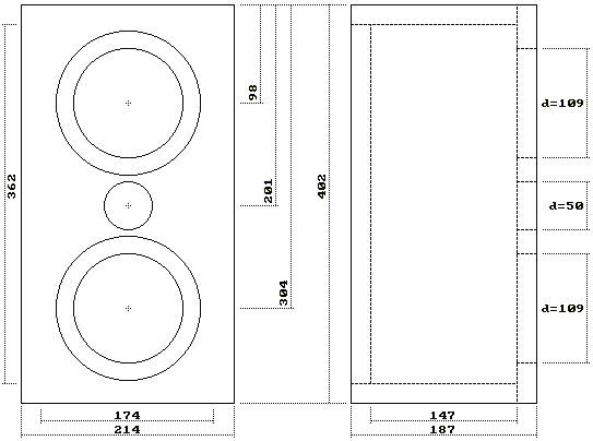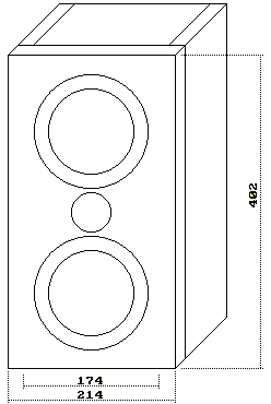 Das Gehäuse wurde aus 19 mm starkem MDF gebaut. Die Schallwand wurde aus 30 mm Buche-Multiplex gefertigt. Das fertige Gehäuse wurde gebeizt, gewachst und poliert.