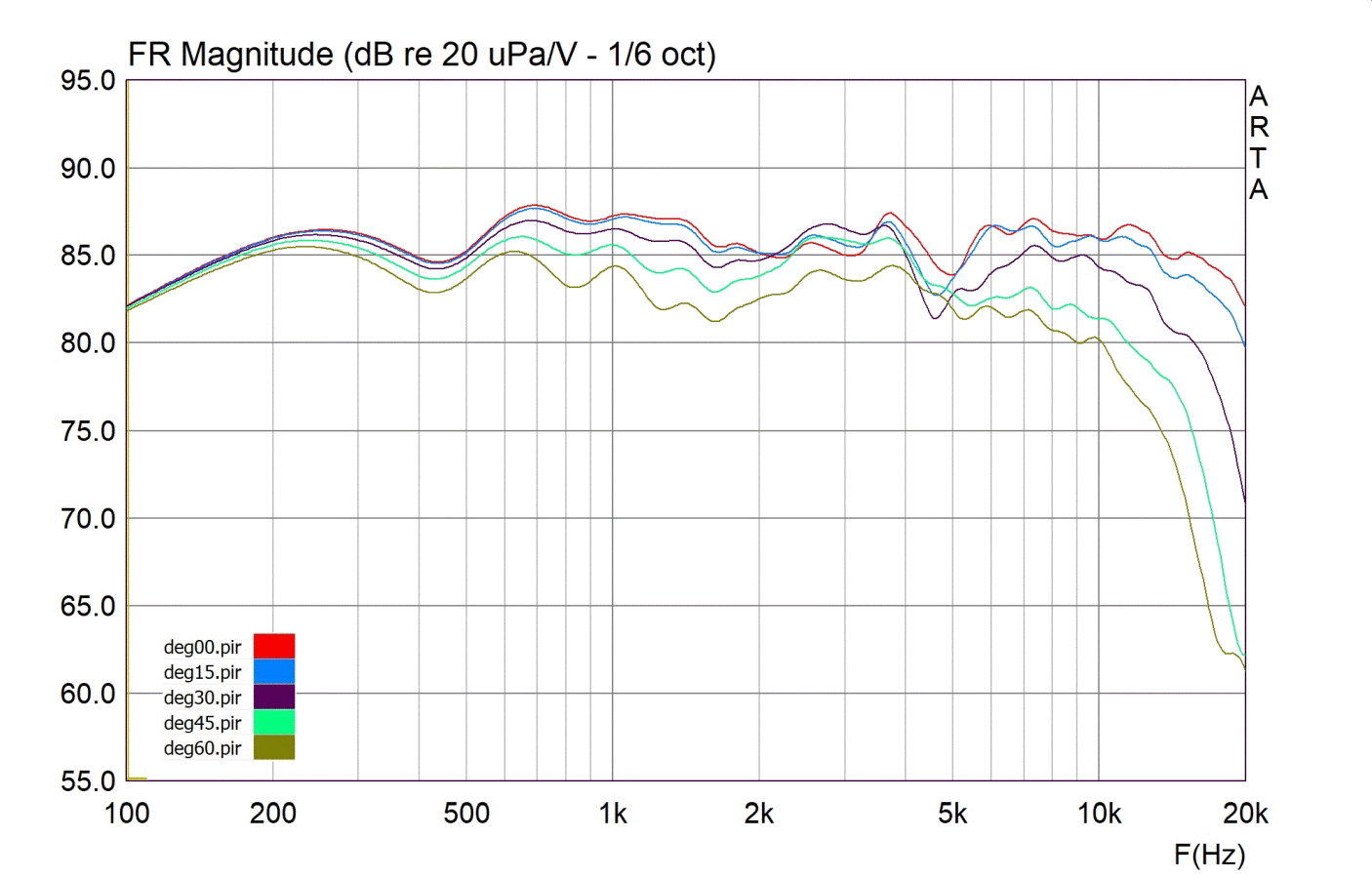 -90 bis 90 Grad in 5 Grad Schritten 1/3 Oktave Glättung
