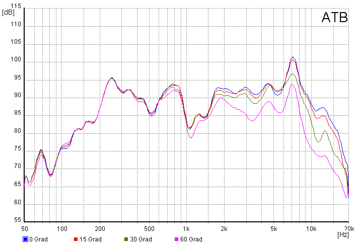 Diese Boxen sind Bestandteil der No-Name-Kompaktanlage meines Sohnes. Solche u.ä. findet man häufig in Elektronikmärkten im 2-stelligen Preisbereich. Die Anlage weist einen leichten Brumm auf, mit dem man leben könnte, aber die Boxen! Als abschreckendes Beispiel habe ich diese Boxen unter den gleichen Bedingungen wie meine anderen Boxen gemessen. Urteilen Sie selbst. Mein Sohn freut sich seit kurzem über zwei F.a.T.T., die seine Anlage um einige 100 Prozent aufwerten. Messungen SPL-Messung - verschiedene Abhörwinkel Schon durch die Impedanzmessung kam der Verdacht auf. Die hier nicht gezeigte Nahfeldmessung der einzelnen Treiber offenbarte es: Der Hochtöner ist ein Fake! Die Box enthält eigentlich nur einen Breitbänder, der den ganzen Frequenzumfang abdecken muß. Dem Impedanzverlauf nach zu urteilen enthält die Box auch kein einziges Frequenzweichenbauteil.