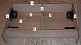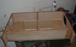 Den Aufbau beginnt man mit dem Anleimen der linken Seitenwand auf die Rückwand. Dann folgt gleich die Oberseite. Jetzt lässt man den Leim eine viertel Stunde lang trocknen und macht dann mit dem Innenteiler weiter. Die Zahlen im Bild (anklicken) geben die Reihenfolge der Verleimung an.