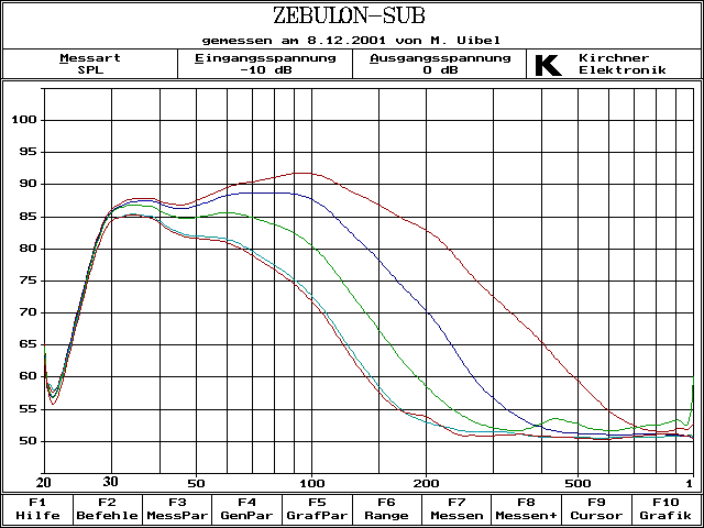 Gemessen wurden 5 verschiedene Trennfrequenzeinstellungen am MIVOC AM 120. Diese sind im Schaubild von oben nach unten