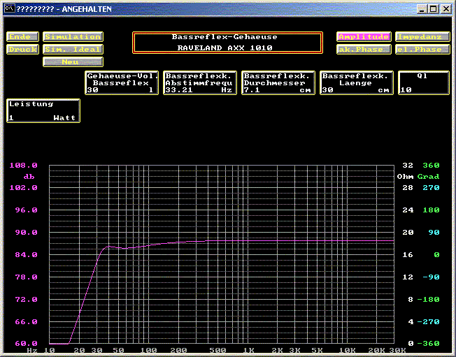 In der Simulation ist die im AM 120 - Modul eingebaute Tiefbassanhebung nicht enthalten.