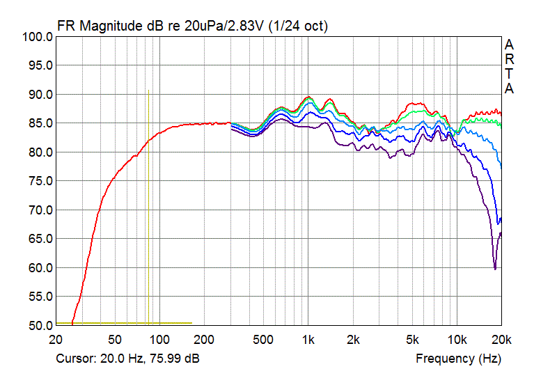 In normalen Wohnräumen kann man eine Box nicht in einer Messung inkl. ihres Bassanteils messen. Deshalb kombiniert man Nahfeldmessungen des Bassanteils mit Fernfeldmessungen. Die Messungen führe ich mit ARTA durch.