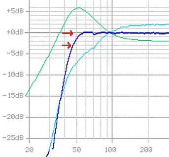 Wie man oben unschwer erkennen kann ist die Box nicht gerade ein Bassmonster, woher auch bei einem 13-er Bass? Etwas "bässer" darf es dann aber doch sein. Für mehr Tiefbass bin ich bereit einige Dezibel Maximalpegel zu opfern.