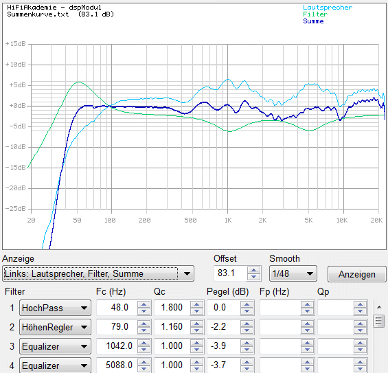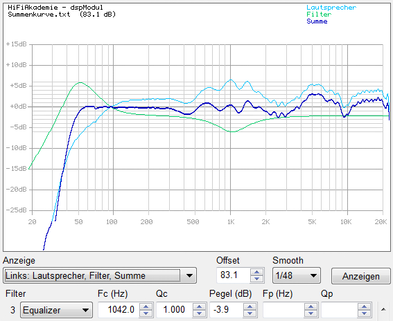 Zunächst importiere ich den zusammengesetzten Frequenzgang in die hifiakademie-DSP-Software.