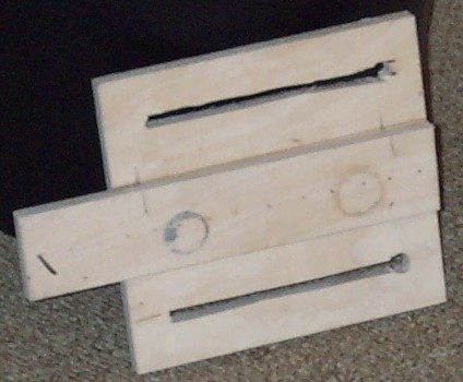 für die Holzschrauben sägen Sie drei kleine Klötzchen, die sie jeweils mit einer Bohrung (ca. 2,5 mm)