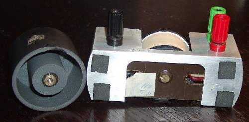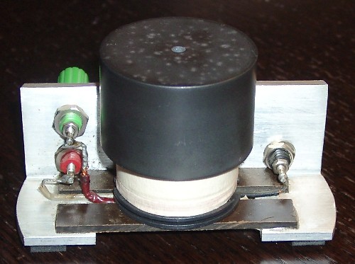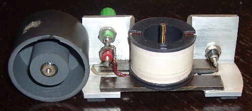 Rückansicht - die Spule ist auf einer PERTINAX-Platte an den ALU-Winkel geklebt. Dazu kann man natürlich auch