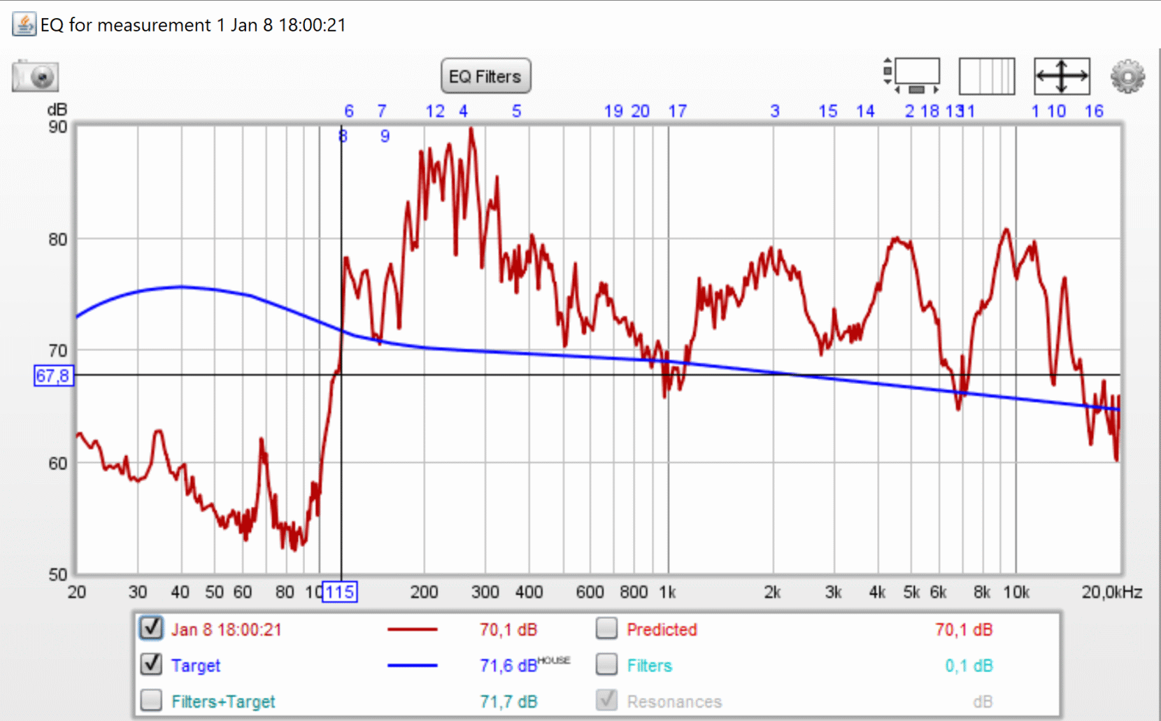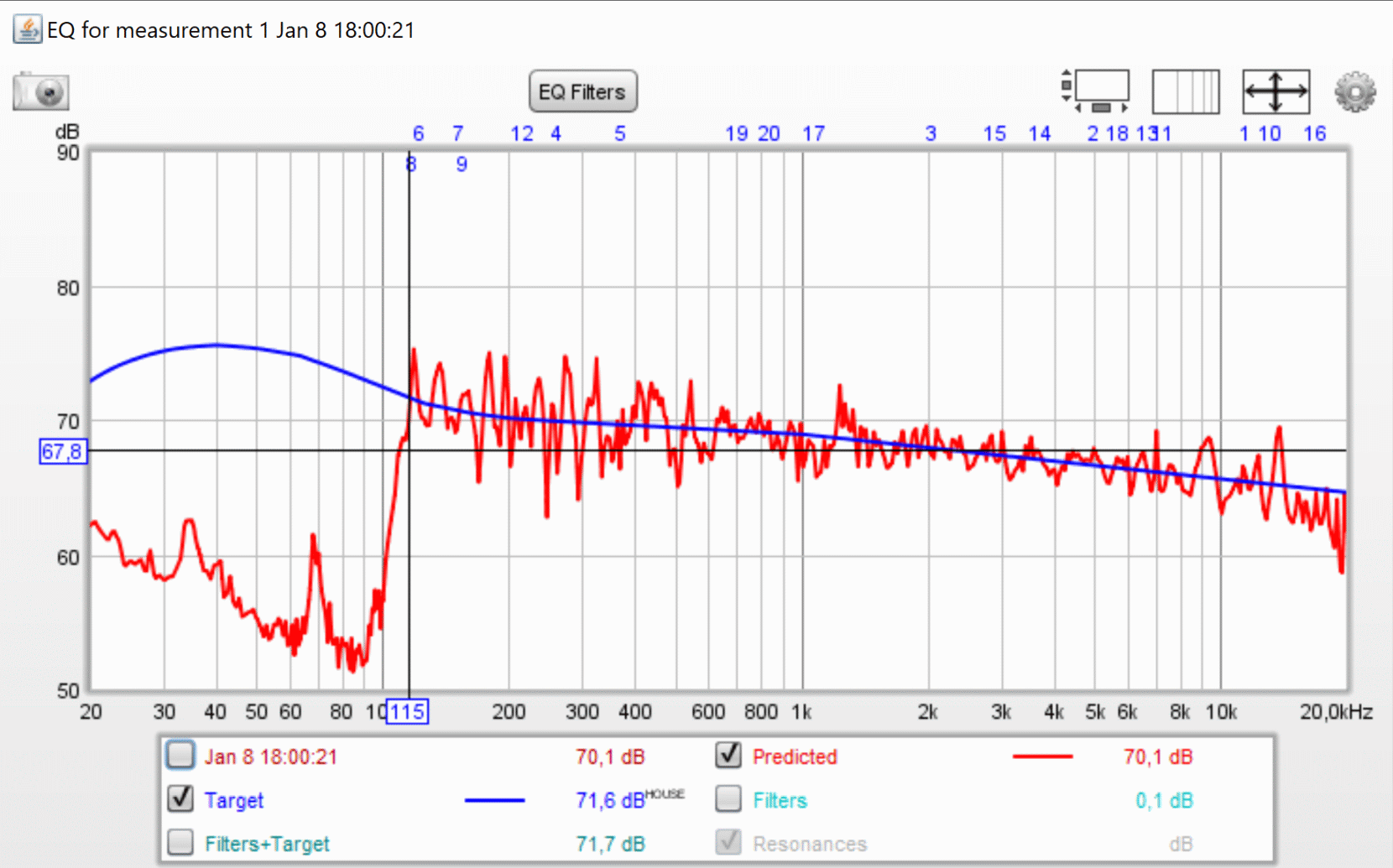 Ich setzte die Zielkurve und ließ ab 115 Hz optimieren, denn darunter geht sowieso nichts bei der Box.