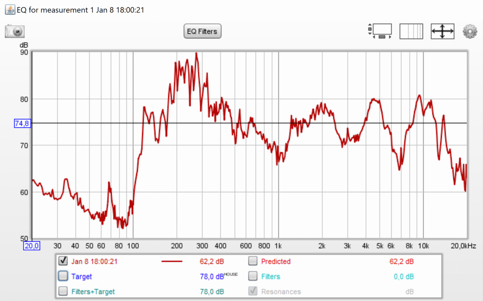 Ich stellte die DSP-Einstellungen in Equalizer APO ein und bekam beim Nachmessen folgendes Ergebnis.