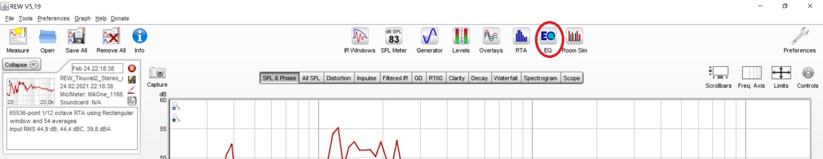 Jetzt starten wir den Equalizer durch Klick auf EQ.