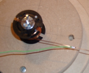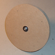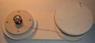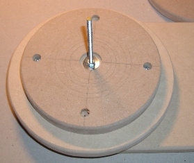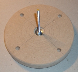 Obere Scheibe auf untere Scheibe geschraubt Die Kreise dienen der einfachen Zentrierung der Spule.