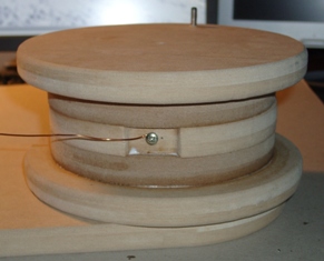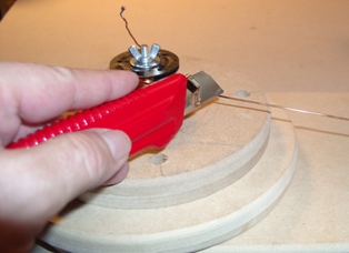 Die rechte Spule erhält eine Senkung zur Aufnahme der Drahtbefestigung. Die Einzelteile werden verleimt.